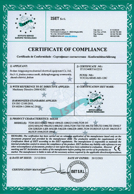 通廣機械通過ISO9001質量管理體系認證,CE認證,重合同守信用等各項認證及榮譽。