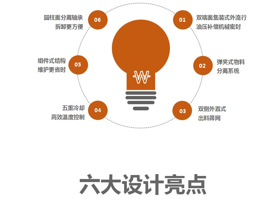 04 穩定性:原來設備靠出料端主軸上面安裝的是一個撥珠輪,懸臂負載很大,軸的跳動量較大,現在都改為研磨盤,懸臂負載很小,對軸承、密封、主軸等使用壽命都有了很大的提高。